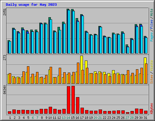 | Day | Hits | Files | Pages | Visits | Sites | KBytes | ||||||